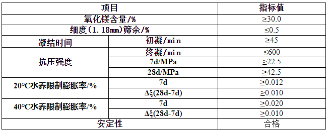 三、技術參數(參考《Q/BTD005-2023鎂質高性能混凝土抗裂膨脹劑》)